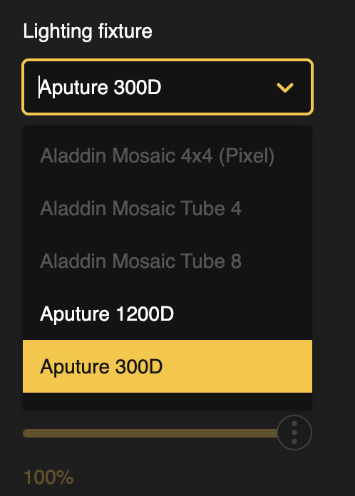 You can then go ahead and add a light source (from a list of industry-standard manufacturers). You can choose how many fixtures you are using and if they are running modifiers.