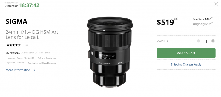 The Sigma 24mm f/1.4 DG HSM Art Lens for Leica L is on sale for $519 USD, which is a big discount of $420 USD.