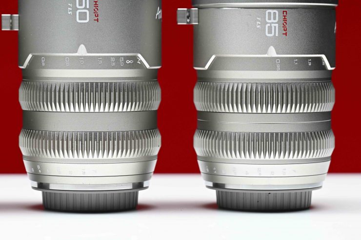 The length of the lenses ranges from 107mm for the 85mm T1.5, up to 120mm for the 50mm T1.5.