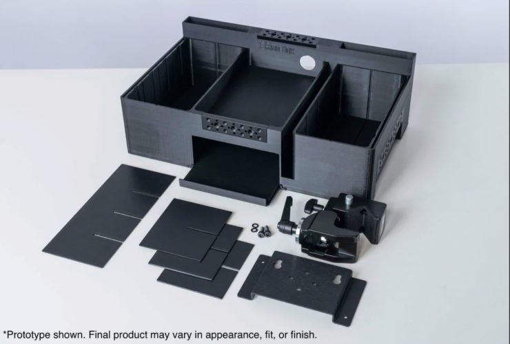 The new LumenArc Takinō Box is a modular tool storage solution for working professionals. It has a rear mounting plate and a super clamp so it can be attached to light stands or carts, etc.