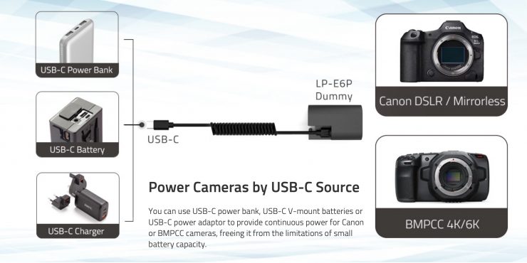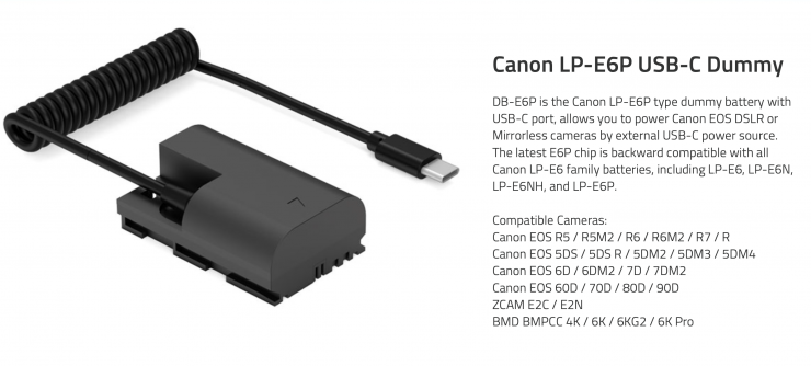- DB-E6P (Canon LP-E6P USB-C Dummy Battery)