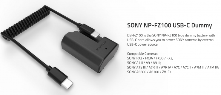 - DB-FZ100 (SONY NP-FZ100 USB-C Dummy Battery)