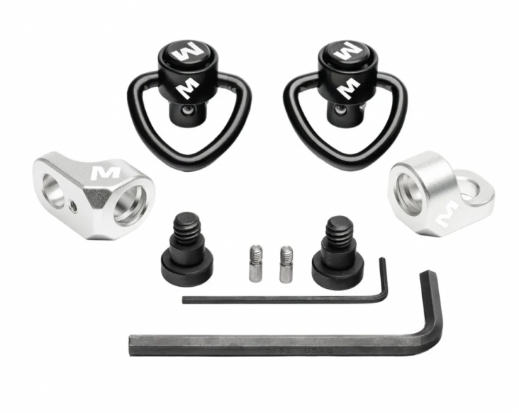 RANGER QD (Quick Detach) Mounts come with 2x mounts, 2x custom swivel screws, 2x anti-twist pins, 1x anti-twist hex key, 1x swivel screw hex key, 2x QD D-Loop swivels. QD sling swivels quickly detach and attach your camera strap with confidence.