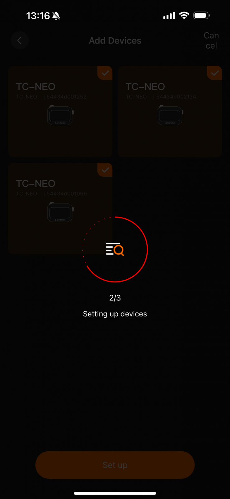 To sync up multiple TC NEO units, I had to do the same steps again for each individual unit, as there doesn’t seem to be any way of doing this in the app.