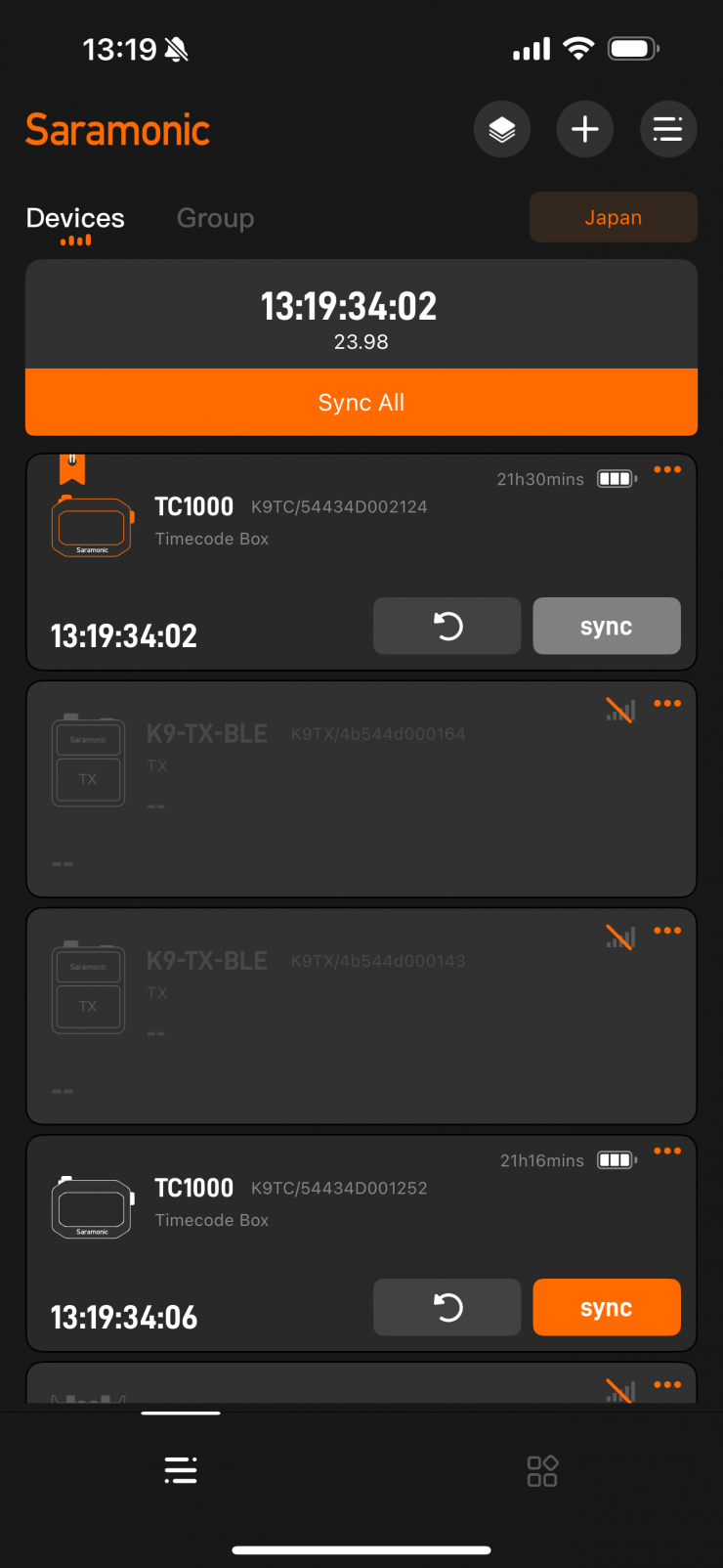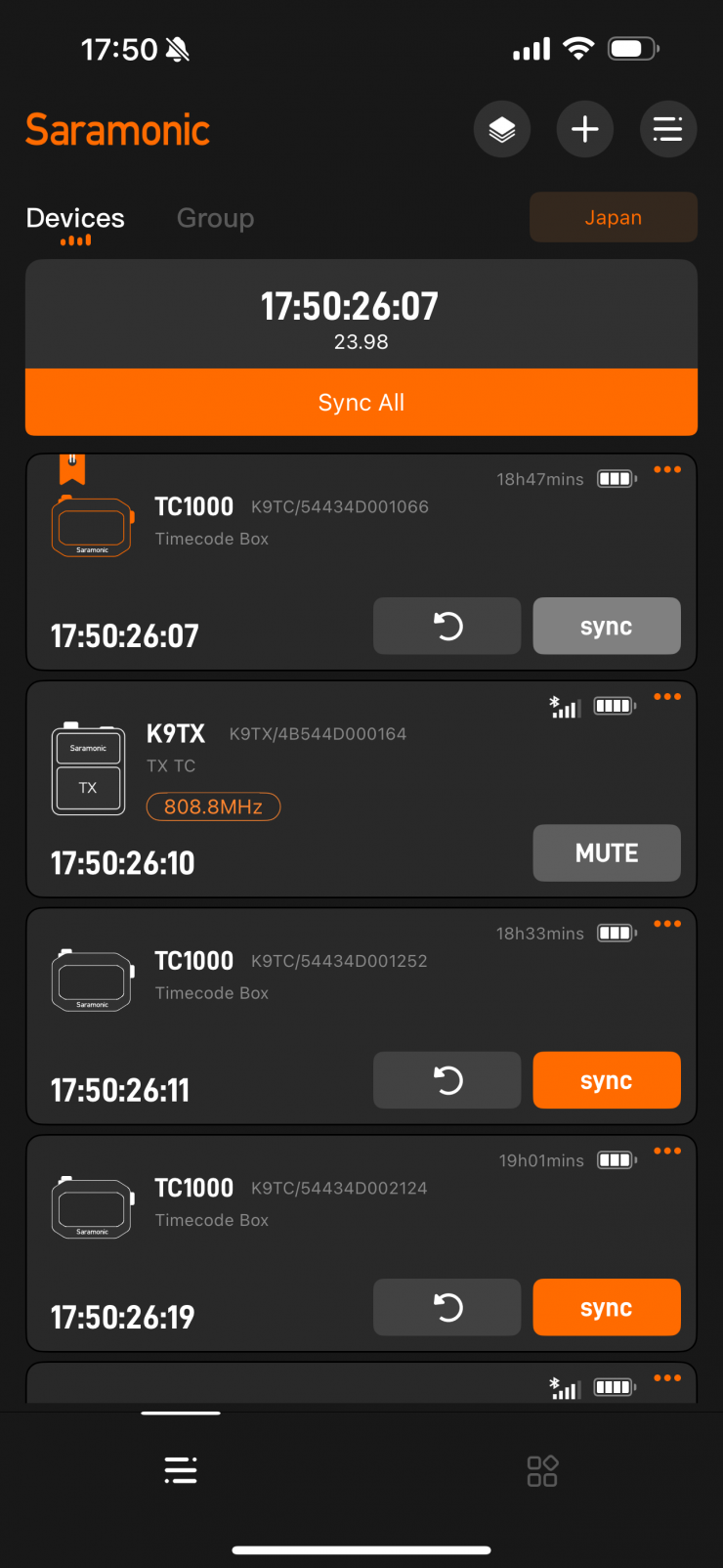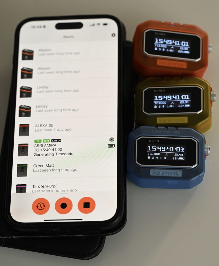 In the app, you can see the Saramanic K9 TX units, as well as the TX-NEO, as long as they have all been added and set up. What puzzles me is that the app doesn’t show all the units having the same exact timecode, nor does it actually tell you if everything is synced correctly.
