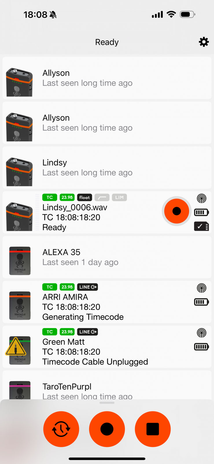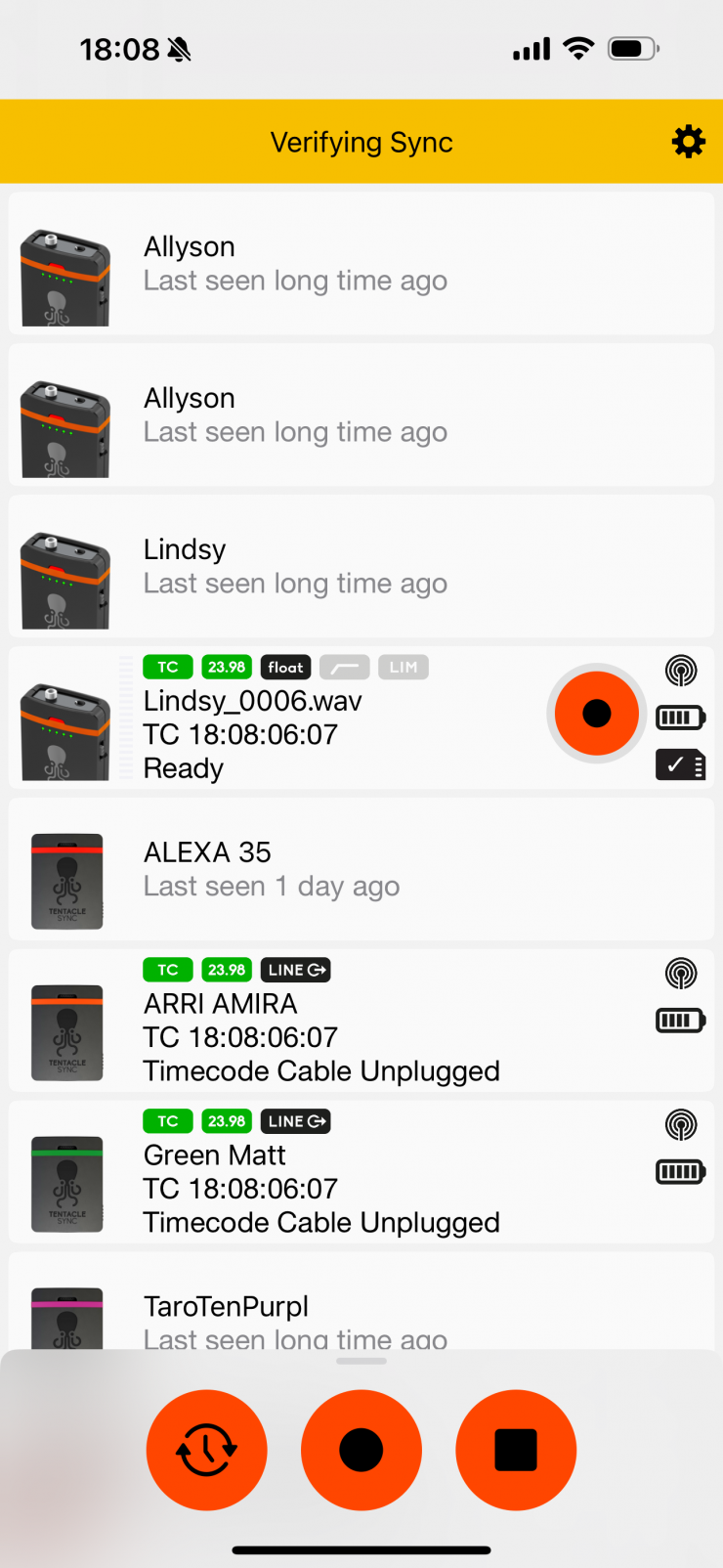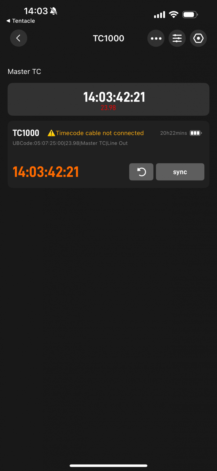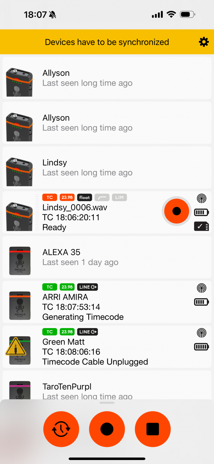 With the Tentacle Sync app, you get a clearly defined view that tells you if the devices need to be synced, are syncing, and are synced correctly. It also shows all the timecodes to be exactly frame accurate.