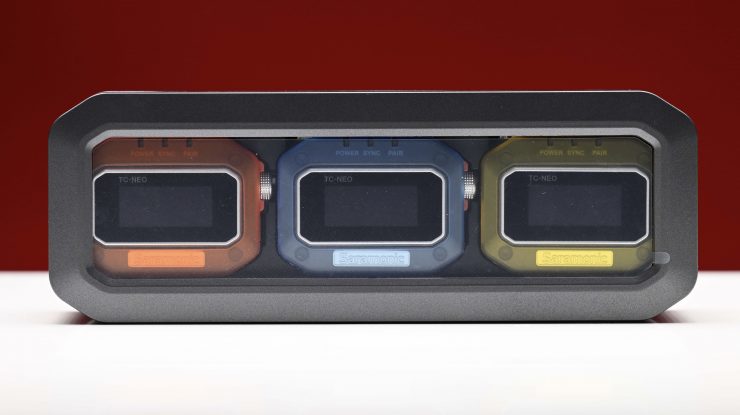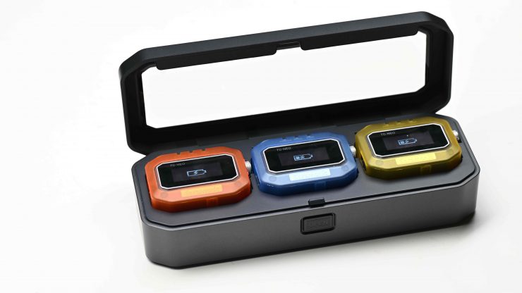The TC-NEO complete kit ships as a three-unit charging kit, with each unit including a 1.1-inch OLED display and supporting up to 22 hours of operation on a single charge. The units can also be powered via USB-C passthrough, which allows for continuous use on extended shooting days.