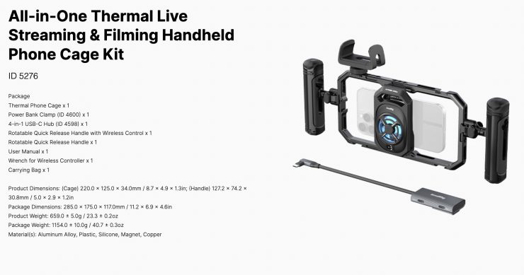SmallRig has announced its new All-in-One Thermal Live Streaming & Filming Handheld Phone Cage Kit. This was designed specifically for content creators who need to live stream for hours or shoot shorts with smartphones.