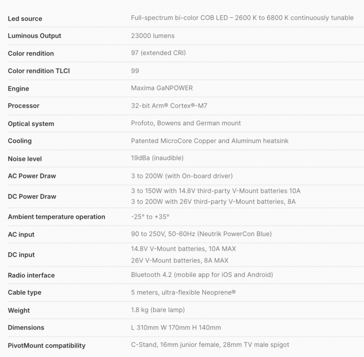 You can power it via the integrated driver or go untethered with V-Mount batteries. In both setups, you get the same Maxima-grade output, whether you’re in your studio or out chasing the shot. The light is claimed to offer best-in-class efficiency and our patented thermal management system. Rapida maximizes battery run-time while minimizing energy use and environmental impact.