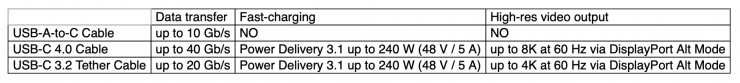 - High-speed data transfer rates of:USB-C 4.0 Cable – up to 40 Gb/s via USB-C 4.0 Gen 3×2