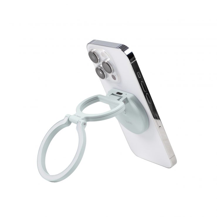 Its dual-hinge design lets you adjust the angle, so it can be used as a fill light, phone stand, or grip. It can be used as a stand to prop up your phone for hands-free video calls, content viewing, or filming. With another twist, it transforms into a steady phone grip.