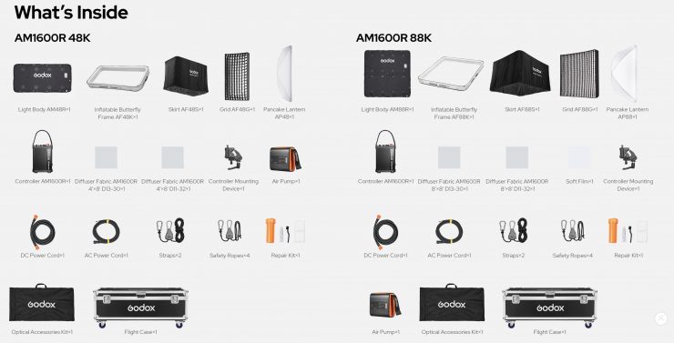 The Godox KNOWLED AM1600R RGB Inflatable LED Light Mat (8 x 8′) is $8,990 USD, and the Godox KNOWLED AM1600R RGB Inflatable LED Light Mat (4 x 8′) is $7,990 USD.