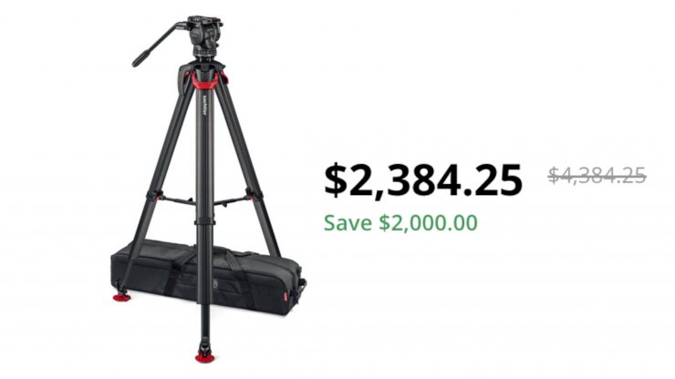 The Sachtler aktiv8 flowtech75 MS Tripod System is on sale for $2,384.25 USD, which is a big discount of $2,000 USD.
