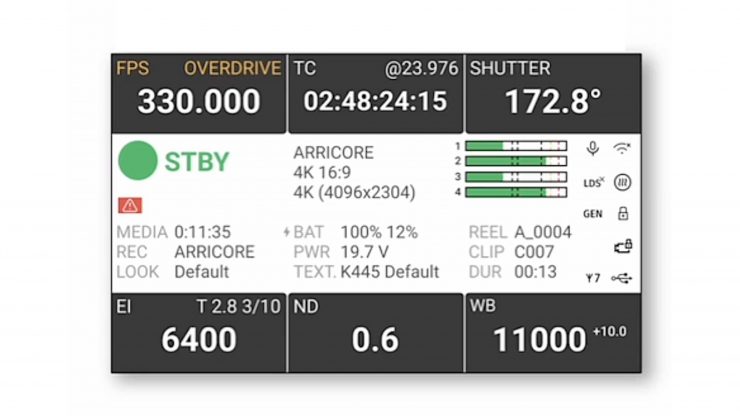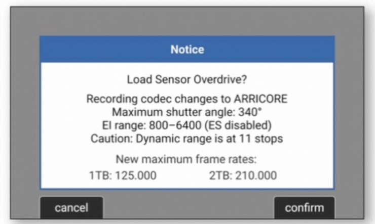 Sensor Overdrive is a special mode where the sensor readout time is reduced. In fact, ARRI has cut it in half from what it was. That allows the highest maximum frame rate, and it’s only available in the new ARRICORE codec, which I will talk about later in the article.