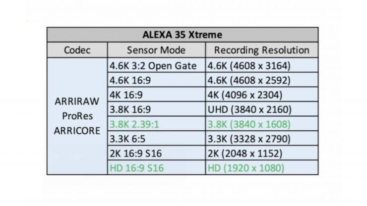 Eight sensor modes, the same for ARRIRAW, ARRICORE and Apple ProRes
