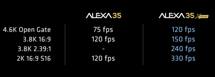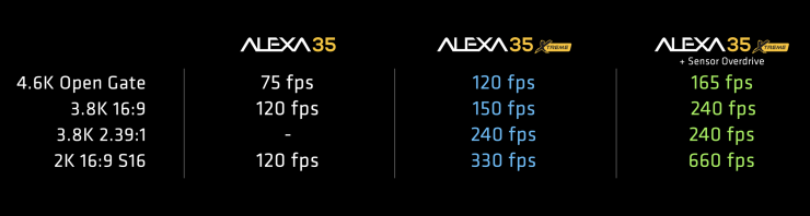 - Enabling higher in-camera speeds in ALEXA 35 Xtreme with up to 330fps in regular or up to 660fps in Sensor Overdrive mode