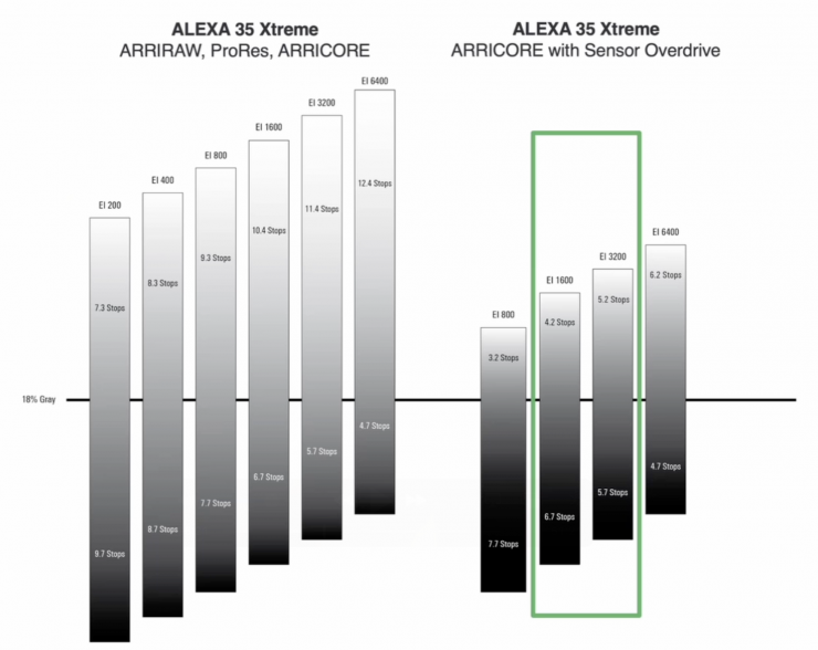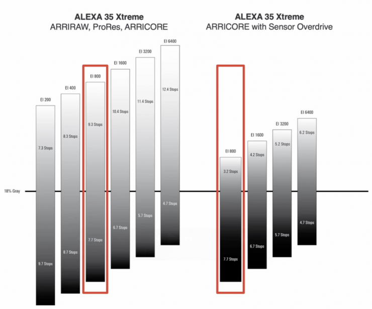 ARRI really strongly recommends working with false color and keeping an eye on the clipping level. You should always shoot tests. Going from 17 to 11 stops is a huge difference. In saying that, I have seen test shots where Sensor Overdrive was used at 3200 ASA, and it was pretty comparable to 800 ASA with it turned off when it comes to highlight protection.