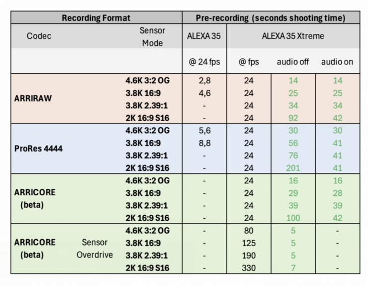 That’s a long time of pre-recording. Now, that said, at this point in time, these long pre-recordings are with audio off. With audio on, it’s capped at 42 seconds. ARRI thinks they know how to change this, but at this stage it is something that wasn’t ready for the first customer shipments. For the time being, there will still be this difference with audio off and audio on, but hopefully in a couple of months, it’s all going to be sorted out.