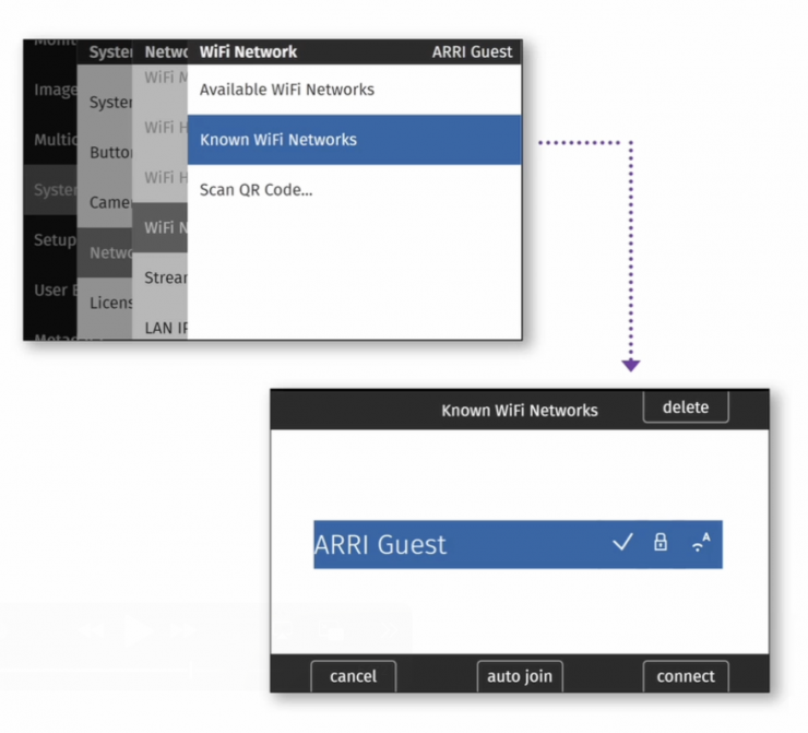 Wi-Fi roaming for mesh networks has also been added. That’s very popular these days, and just like your iPhone has, the camera now also keeps a list of previously known Wi-Fi networks. You can also tell it to optionally automatically reconnect to a previously known Wi-Fi network. It also shows you the signal strength. Another WiFi improvement is that the camera is now aware of where in the world it is (or at least what the nearest WiFi router claims), and it will automatically use the greatest signal strength that is legal in that location. In the past, the ALEXA 35 WiFi had to be set to a WiFi signal strength that was legal everywhere in the world, so the lowest common denominator, but now it can increase signal strength up to the local legal limit