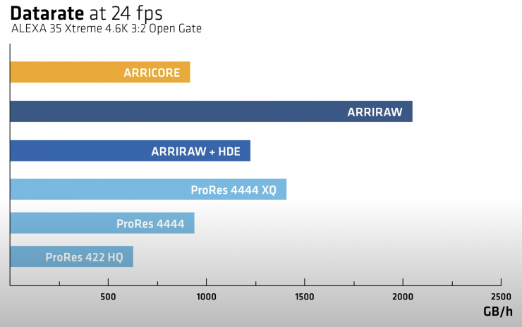 ARRICORE also has a much lower data rate than other existing codecs ARRI has been using. It has about half the data rate of ARRIRAW, and a little less than ProRes 4444. It is even less than ARRIRAW with HDE, even though that’s not a really fair comparison, because ARRIRAW with HDE happens during the download.