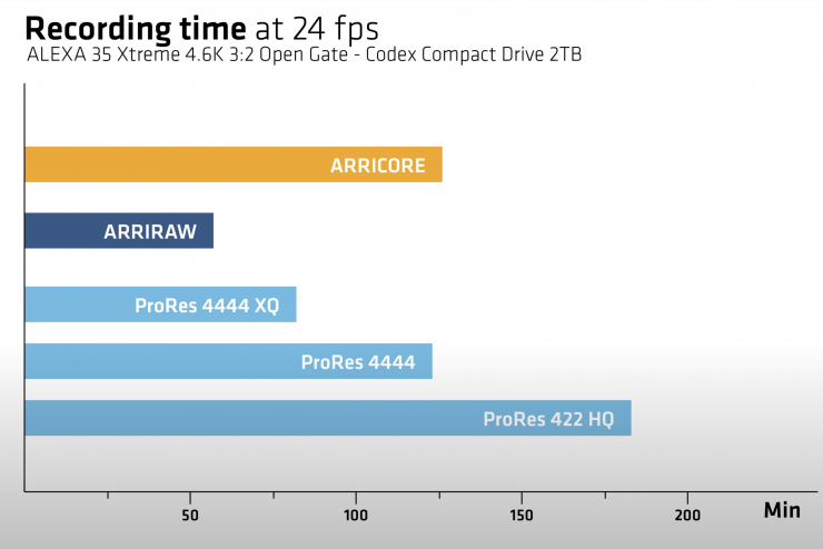 ARRICORE can certainly reduce the number of drives you need on the set and your download times. Your recording time doubles that of ARRIRAW, and your download speed halves.