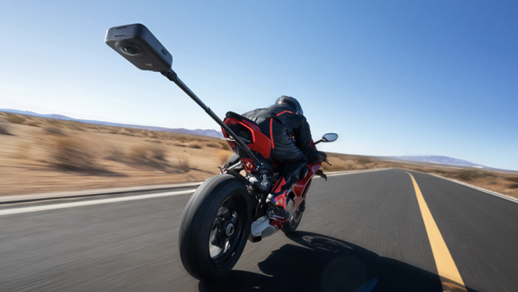 When using a selfie stick, you can capture sweeping 360° videos with the invisible selfie stick effect that removes the stick itself from the video with no post-editing required. This allows you to experience a third-person perspective as if a drone were tracking you.