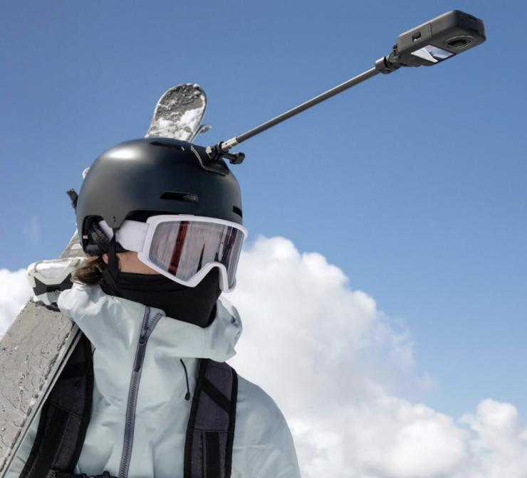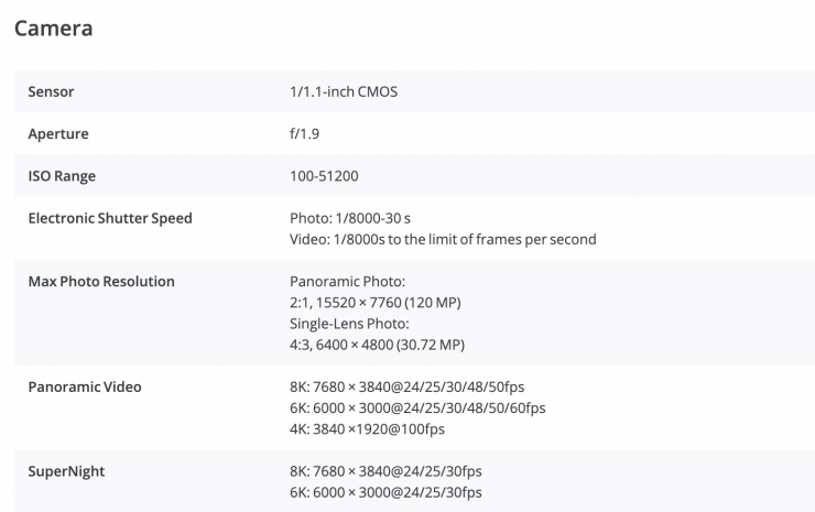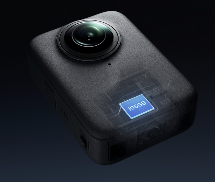 The new 1″ CMOS sensor paired with dual wide-angle lenses delivers 360° imaging with minimal power consumption. Featuring an f/1.9 aperture, its image quality is stated to remain crisp and bright, even in low-light conditions. A new pixel-allocation scheme allows you to capture 8K30 360° video, and the camera features an ultra-high dynamic range that is claimed to rival cinema cameras, offering a 77% image quality improvement over 5.7K sensors.