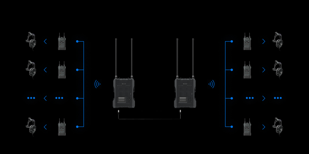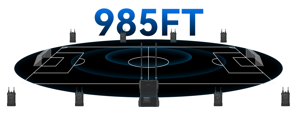 The external fiberglass antennas provide a claimed transmission range of approximately 985ft (300m) in all directions, making them suitable for large-scale events like sports events, exhibitions, etc.