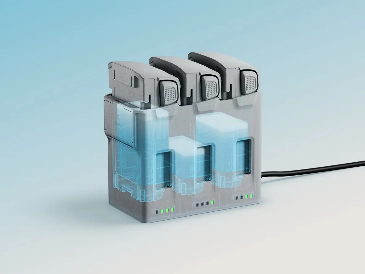 You can charge the drone directly via USB-C. For faster turnaround, the Charging Hub charges up to three batteries simultaneously.